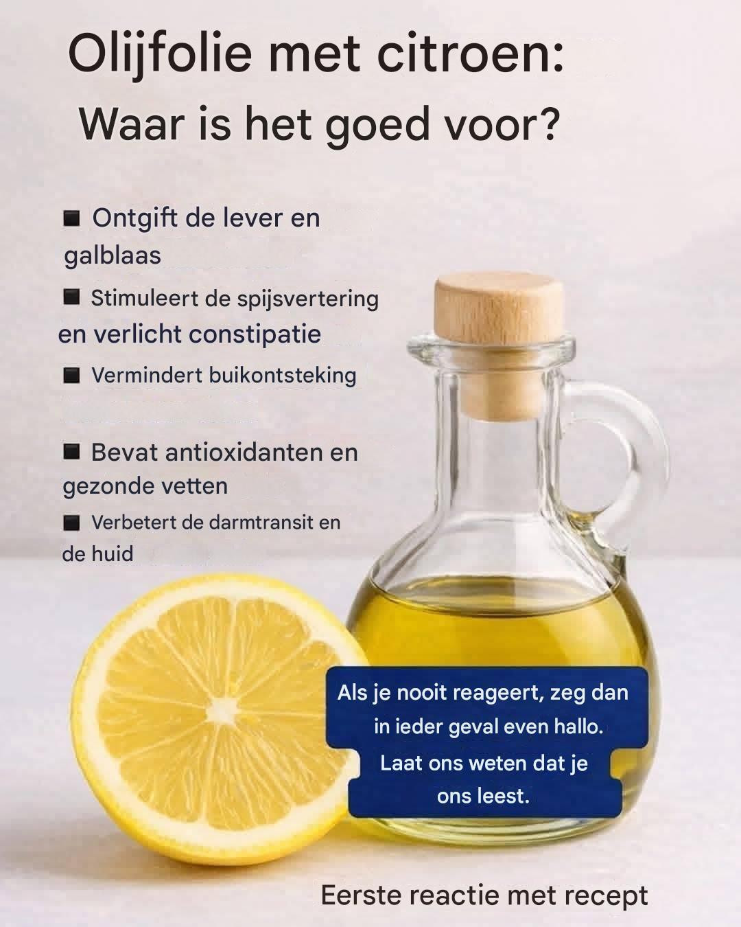 Olijfolie stimuleert de galproductie, terwijl citroen de spijsverteringsenzymen activeert.