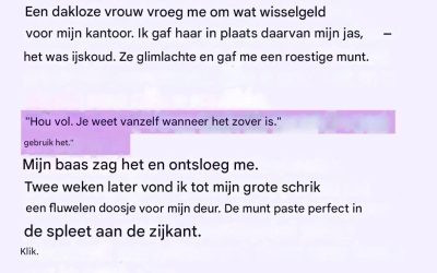 Ik gaf mijn jas aan een dakloze vrouw – twee weken later veranderde een fluwelen tas mijn leven.