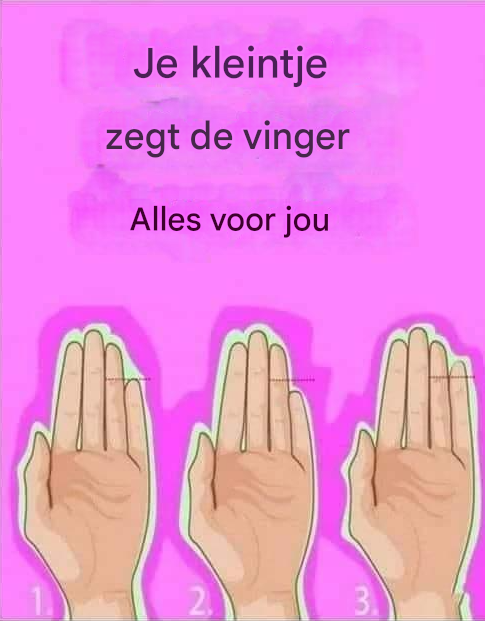 Als je pink korter is dan de eerste lijn van je ringvinger, duidt dit op een grotere gevoeligheid en altruïsme. Je bent bereid je eigen behoeften op te offeren om anderen te helpen. Wees echter voorzichtig, want geschonden vertrouwen kan je diep kwetsen.
