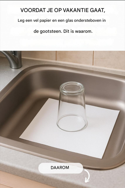 Als we het hebben over de voorbereiding op een vakantie, denken we vaak aan het boeken van een hotel, het inpakken van een koffer, het controleren van identiteitsbewijzen, het programmeren van de gps of het water geven van de planten tijdens onze afwezigheid. Maar er is een discreet, bijna onzichtbaar gebaar dat je kan behoeden voor een onaangename verrassing bij terugkomst: een glas ondersteboven op een stuk papier in de gootsteen zetten.