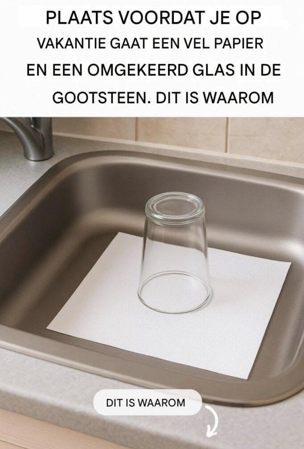 👉 Daarom moet je altijd een omgekeerd glas en een stuk papier in de gootsteen laten liggen voordat je op vakantie gaat