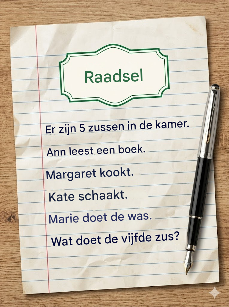 Hier is een leuke draai aan een klassieke hersenkraker. Op het eerste gezicht lijkt het simpel, maar zoals bij veel klassieke raadsels is het antwoord verborgen in de formulering. Dus, laten we erin duiken!