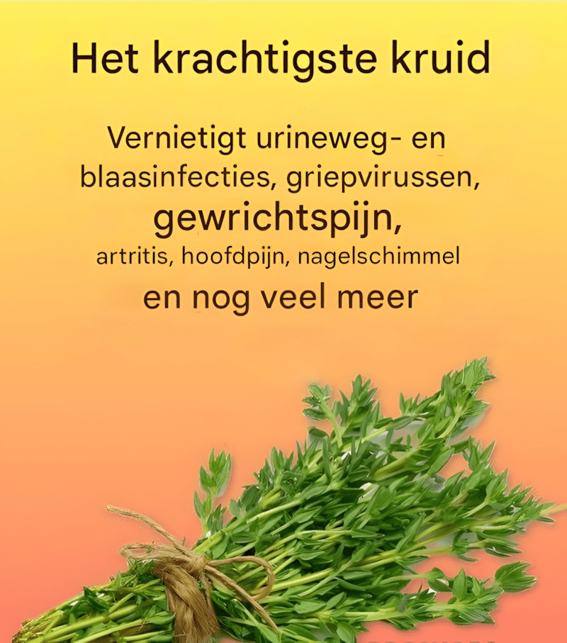 1. Versterkt het immuunsysteem: Dankzij het hoge gehalte aan vitamine C en antioxidanten versterkt tijm de weerstand van het lichaam en helpt het bij het bestrijden van infecties en verkoudheid.