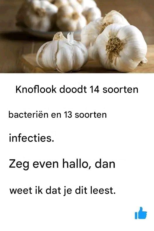 Wetenschappelijk onderzoek heeft veel van de beweringen over knoflook bevestigd. Studies hebben aangetoond dat knoflook tot wel 14 soorten bacteriën kan neutraliseren en 13 soorten infecties kan bestrijden. Dit maakt het een superfood dat we zouden moeten overwegen om in ons dagelijkse voedingspatroon op te nemen. Koop vitaminen en supplementen