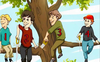 Vier kinderen in een boom, een zaag en plotselinge twijfel. Het antwoord lijkt voor de hand liggend... maar het zet…