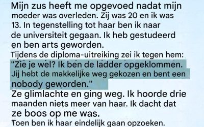 Tijdens mijn diploma-uitreiking noemde ik mijn zus een onbeduidend persoon – drie maanden later liep ik haar kamer binnen en stond ik als versteend.